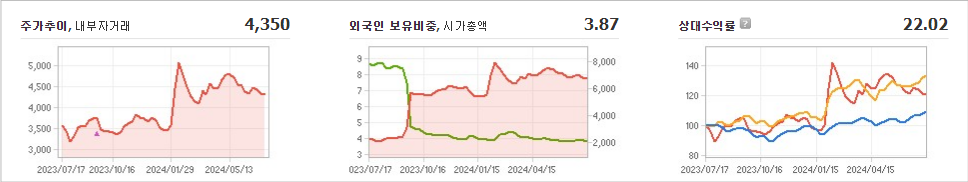 현대지에프홀딩스의 현재 주가는 4,350원이며 전일 대비 -1.02원 하락했습니다. 주주 구성을 살펴보면 정지선(외 2인)이 지분의 77.15%를 소유하고 있습니다. 이 회사는 복합 산업 기업으로 시장에서의 주가는 4,350원입니다. 시가 총액은 6961억 원이며 발행 주식수는 155,904,301주입니다. 외국인 보유 비중은 3.87%이며 장중 거래량은 71,890주를 기록했습니다. 또한 매출액은 11,683억 원을 달성했습니다.