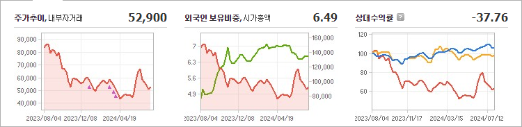 현재 포스코인터내셔널의 주가는 52,900원으로, 전일 대비 1,900원 하락했습니다. 주주 현황을 살펴보면 포스코홀딩스와 그 외 3인이 총 70.82%의 지분을 보유하고 있습니다. 포스코인터내셔널은 주로 무역을 하는 기업으로, 현재 주가는 52,900원입니다. 이 회사의 시가 총액은 9조 3,063억 원이며, 발행된 주식 수는 175,922,788주입니다. 외국인 보유 비중은 6.49%이며, 장중 거래량은 1,219,794주에 달했습니다. 또한, 포스코인터내셔널의 매출액은 77,605억 원에 이릅니다.