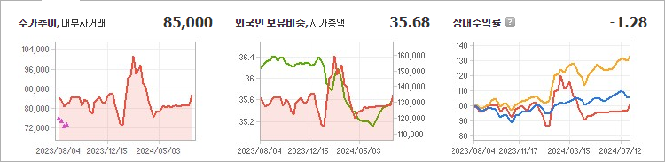 LG 주식은 LG Corp.의 상장 주식으로, 한국의 대표적인 대기업 중 하나인 LG 그룹에 속합니다. LG 전자, LG 화학, LG 디스플레이 등 다양한 자회사를 통해 전자, 화학, 통신 등 여러 산업에 진출해 있습니다. LG는 혁신과 기술력으로 글로벌 시장에서 경쟁력을 유지하고 있으며, 지속 가능한 발전과 친환경 기술에도 힘쓰고 있습니다. 주가는 시장의 변동성에 따라 영향을 받으며, 투자자들은 LG의 실적, 산업 동향 및 글로벌 경제 상황을 주의 깊게 살펴봅니다. LG 주식은 한국 증권거래소(KRX)에 상장되어 거래됩니다.