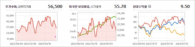 현재 에스원의 주가는 56,500원으로, 전일 대비 -3.42원의 변동을 보이고 있습니다. 주주 현황을 살펴보면 삼성SDI와 기타 5인이 총 25.65%의 지분을 보유하고 있습니다. 에스원은 상업 서비스 분야에 속하는 기업으로, 현재 주가는 56,500원입니다. 에스원의 시가총액은 2조 1,470억 원이며, 발행된 주식 수는 37,999,178주입니다. 외국인 보유 비율은 55.78%이며, 장중 거래량은 19,272주에 달했습니다. 이 회사의 매출액은 6,628억 원에 이릅니다.