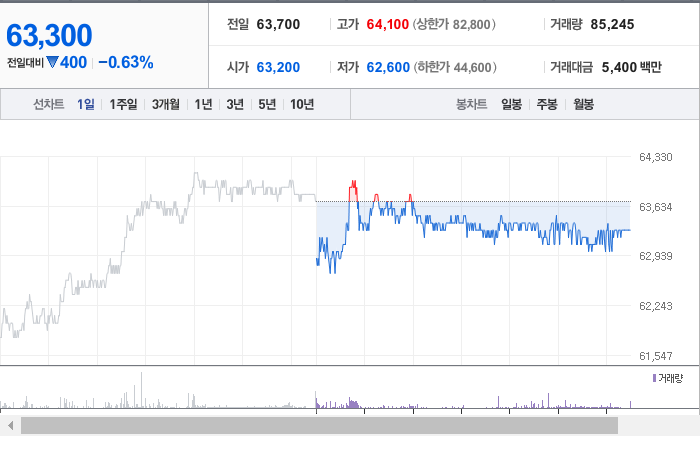 롯데쇼핑의 현재 주가는 63,300원으로, 전날보다 400원이 하락했습니다. 주주 현황을 보면 롯데지주와 33명의 개인이 총 60.40%의 지분을 보유하고 있습니다. 롯데쇼핑은 도소매 분야의 기업으로, 현재 주가는 63,300원입니다. 이 회사의 시가총액은 1조 7,907억 원이며, 총 발행 주식 수는 28,288,755주입니다. 외국인 투자자의 보유 비율은 8.46%이며, 장중 거래량은 85,612주에 달했습니다. 롯데쇼핑의 매출액은 35,133억 원에 이릅니다.