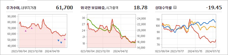현재 이마트의 주가는 61,700원으로, 전일 대비 900원이 하락했습니다. 주주 현황을 살펴보면 정용진(외 1인)이 28.56%의 지분을 보유하고 있습니다. 이마트는 도소매 기업으로, 현재 주가는 61,700원입니다. 이마트의 시가 총액은 1조 7,199억 원이며, 발행 주식 수는 27,875,819주입니다. 외국인 보유 비율은 18.78%이며, 장중 거래량은 231,257주에 달했습니다. 이마트의 매출액은 72,067억 원에 이릅니다.