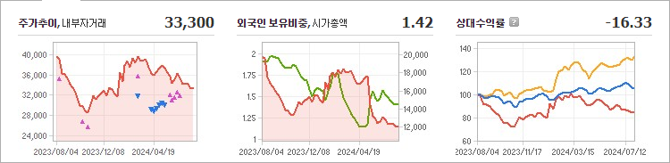 현재 동원산업의 주가는 33,300원으로, 전일 대비 600원이 하락했습니다. 주주 현황을 보면 김남정 씨와 18명의 주주가 총 87.81%의 지분을 보유하고 있습니다. 동원산업은 식품 관련 기업으로, 현재 주가는 33,300원입니다. 이 회사의 시가 총액은 1조 1,995억 원이며, 발행된 주식 수는 36,021,895주입니다. 외국인 투자자의 보유 비율은 1.42%이고, 장중 거래량은 25,052주에 달했습니다. 동원산업의 매출액은 22,419억 원에 이릅니다.