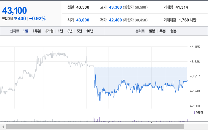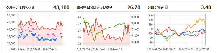 현대엘리베이의 현재 주가는 43,100원으로, 전일 대비 400원이 하락했습니다. 주주 현황을 보면 현대홀딩스컴퍼니와 그 외 17명이 총 27.75%의 지분을 보유하고 있습니다. 현대엘리베이는 기계 산업에 속하는 기업으로, 현재 주가는 43,100원입니다. 이 회사의 시가 총액은 1조 6,849억 원이며, 발행된 주식 수는 39,092,385주입니다. 외국인의 보유 비율은 26.70%이며, 장중 거래량은 41,363주에 달했습니다. 또한, 현대엘리베이의 매출액은 6,613억 원을 기록했습니다.