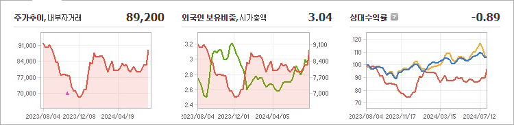 현재 DN오토모티브의 주가는 89,200원으로, 전날보다 1,500원이 하락했습니다. 주주 현황을 살펴보면, 김상헌 씨와 다른 5인이 총 50.89%의 지분을 보유하고 있습니다. DN오토모티브는 자동차 부품을 전문으로 하는 기업으로, 현재 주가는 89,200원입니다. 이 회사의 시가총액은 8,915억 원이며, 발행된 주식 수는 9,994,005주입니다. 외국인 보유 비율은 3.04%이며, 장중 거래량은 31,703주에 달했습니다. DN오토모티브의 연간 매출액은 7,809억 원입니다.